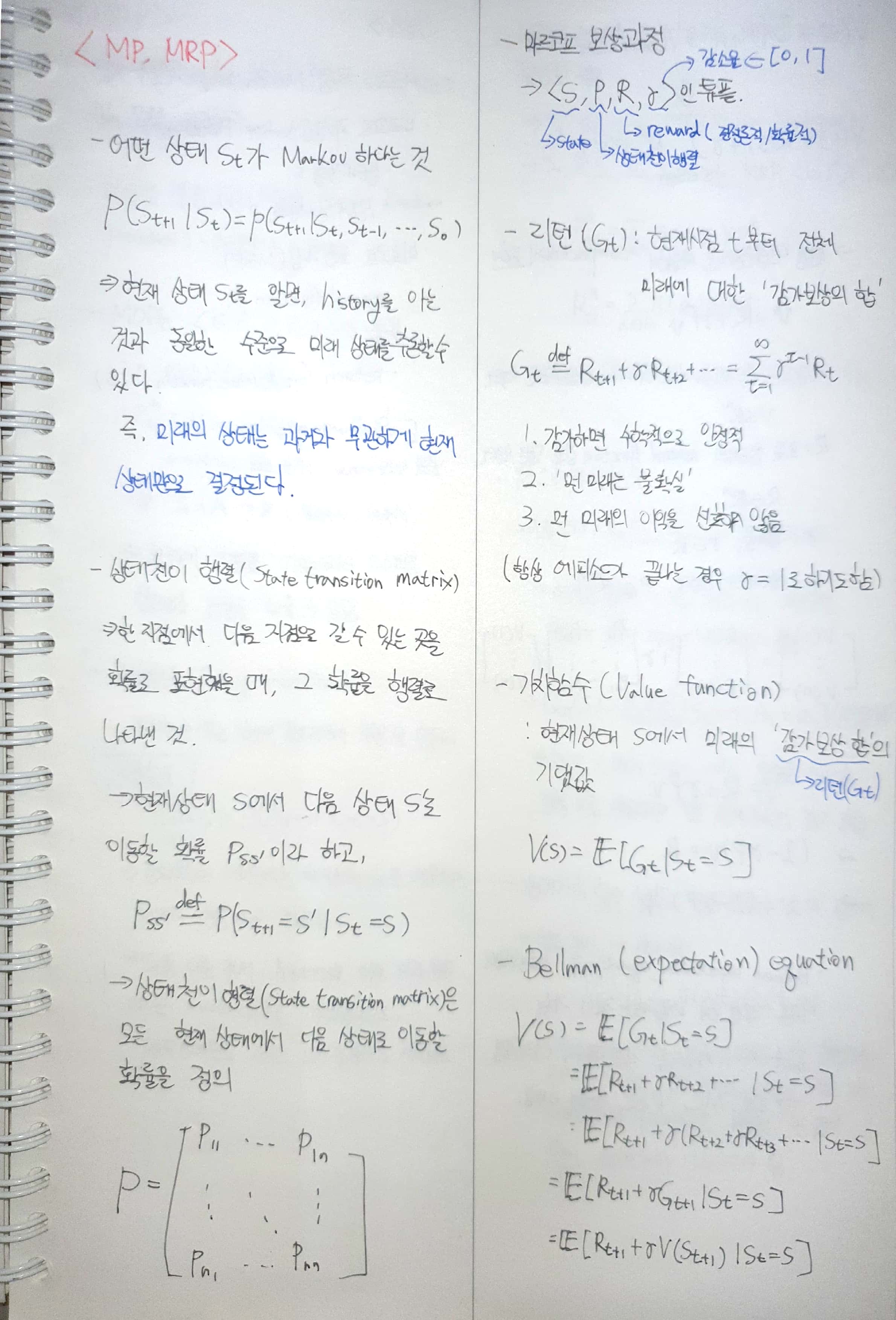 - 마르코프 보상 과정(Markov Reward PRocesses: MRP)