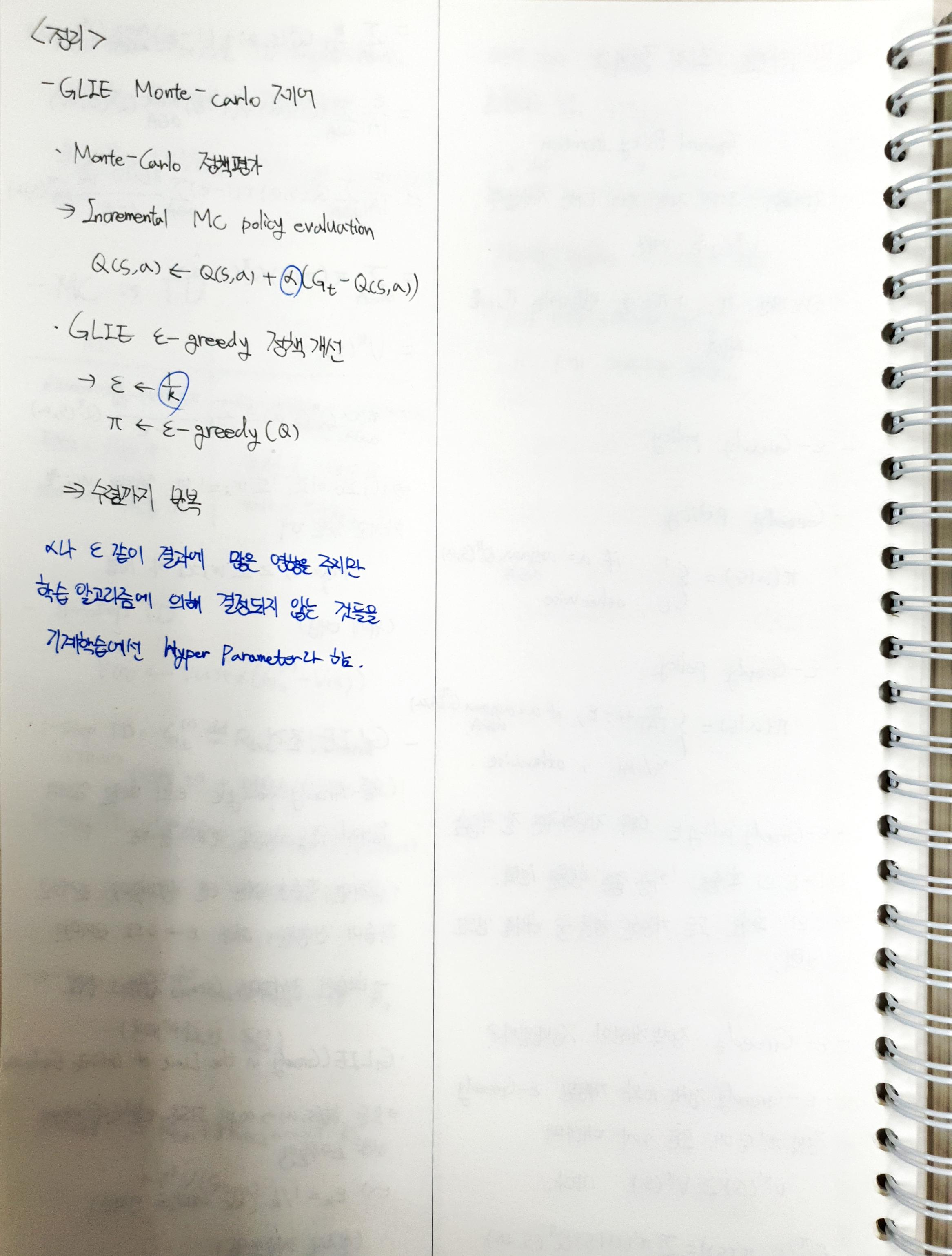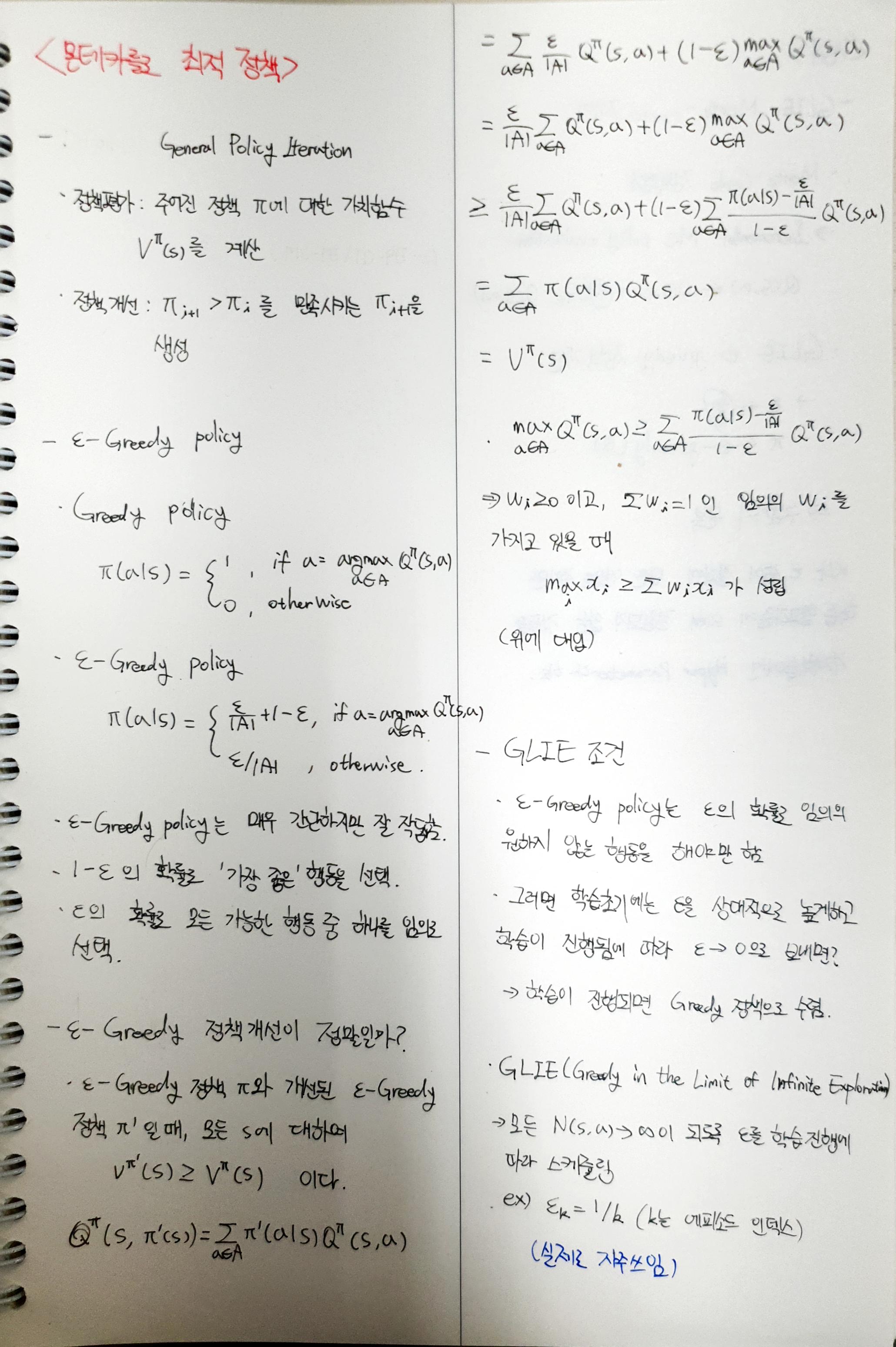 손으로 쓰는 강화학습(Reinforcement Learning) - (5) Monte-Carlo 최적 정책, GLIE, e-greedy policy