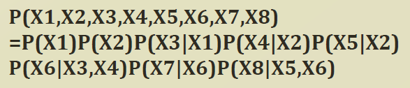 - $P(X_1, X_2, X_3) = P(X_1 | X2, X3) P(X_2|X_3)P(X_3)$