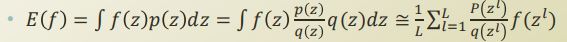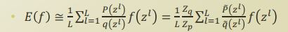 - $f(z^l)$ 앞에 있는 $p(z^l)/q(z^l)$은 개별 sample $f(z^l)$에 대하여 weight라고 볼 수 있음 (가중평균)