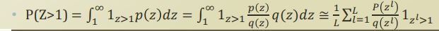 - 특정 샘플이 1보다 클 확률을 구할때, $p(z)$가 1 이상은 case에 대해서만 summantion